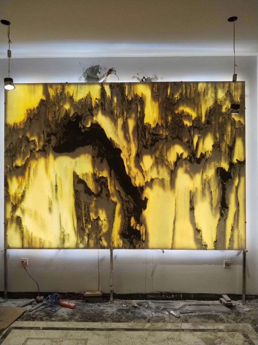 Thi công tranh đá Onyx xuyên sáng cho A Trường Mộc Lan 2.22 Green bay.