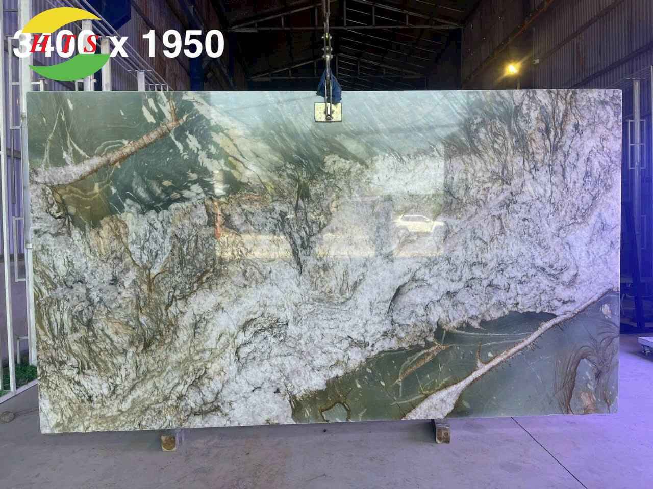 Mẫu Tranh Đá Thạch Anh Màu Xanh HTS 123 mang đến vẻ đẹp tự nhiên, đầy sang trọng với màu xanh ngọc bích đặc trưng, xen kẽ lớp vân mây mềm mại và hiệu ứng xuyên sáng độc đáo. Bức này là sự kết hợp hoàn mỹ giữa thiên nhiên và nghệ thuật, tạo nên điểm nhấn ấn tượng cho không gian sống.