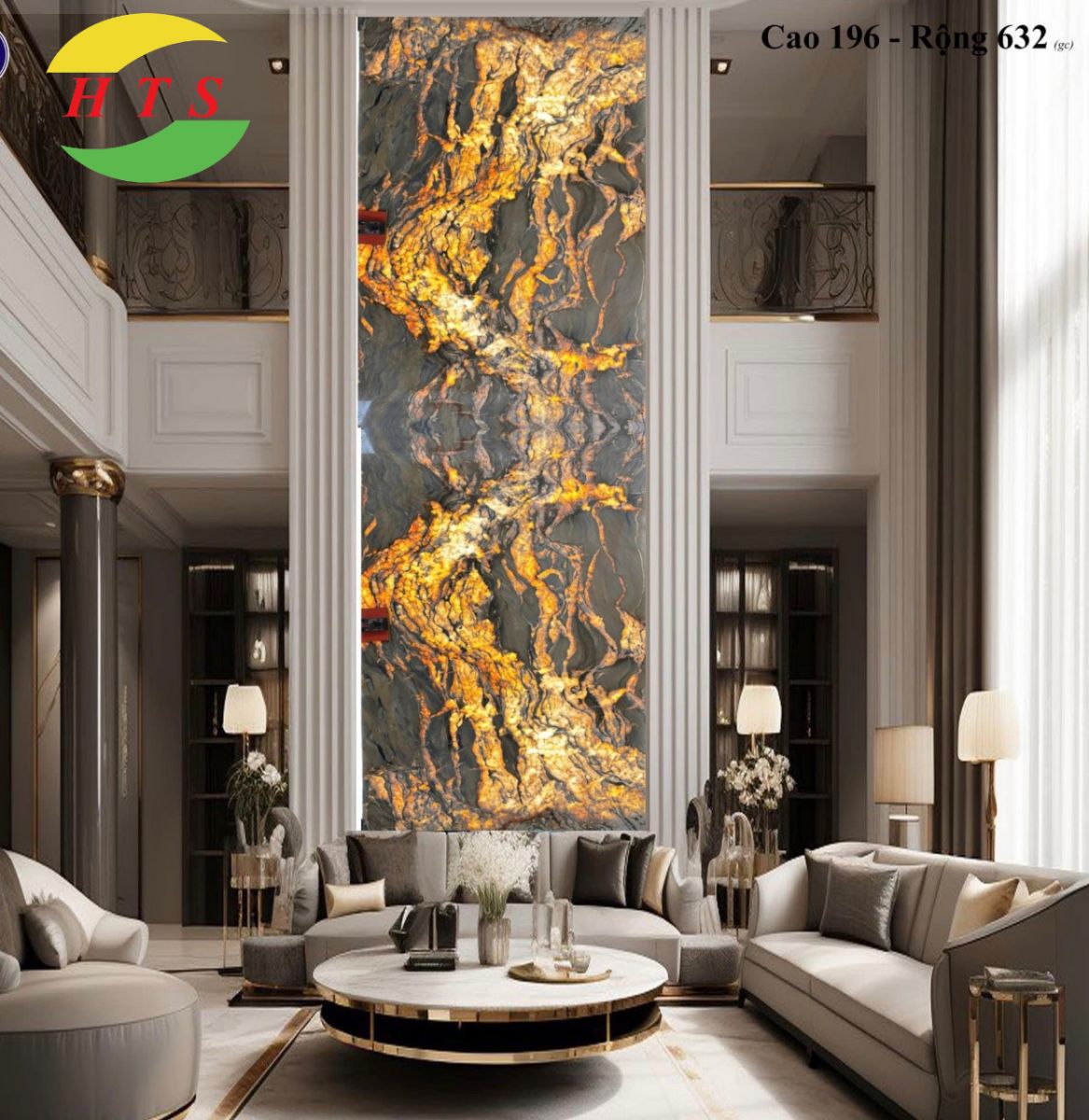 Tranh Đá Thạch Anh Xuyên Sáng Màu Vàng HTS01 ốp thông tầng