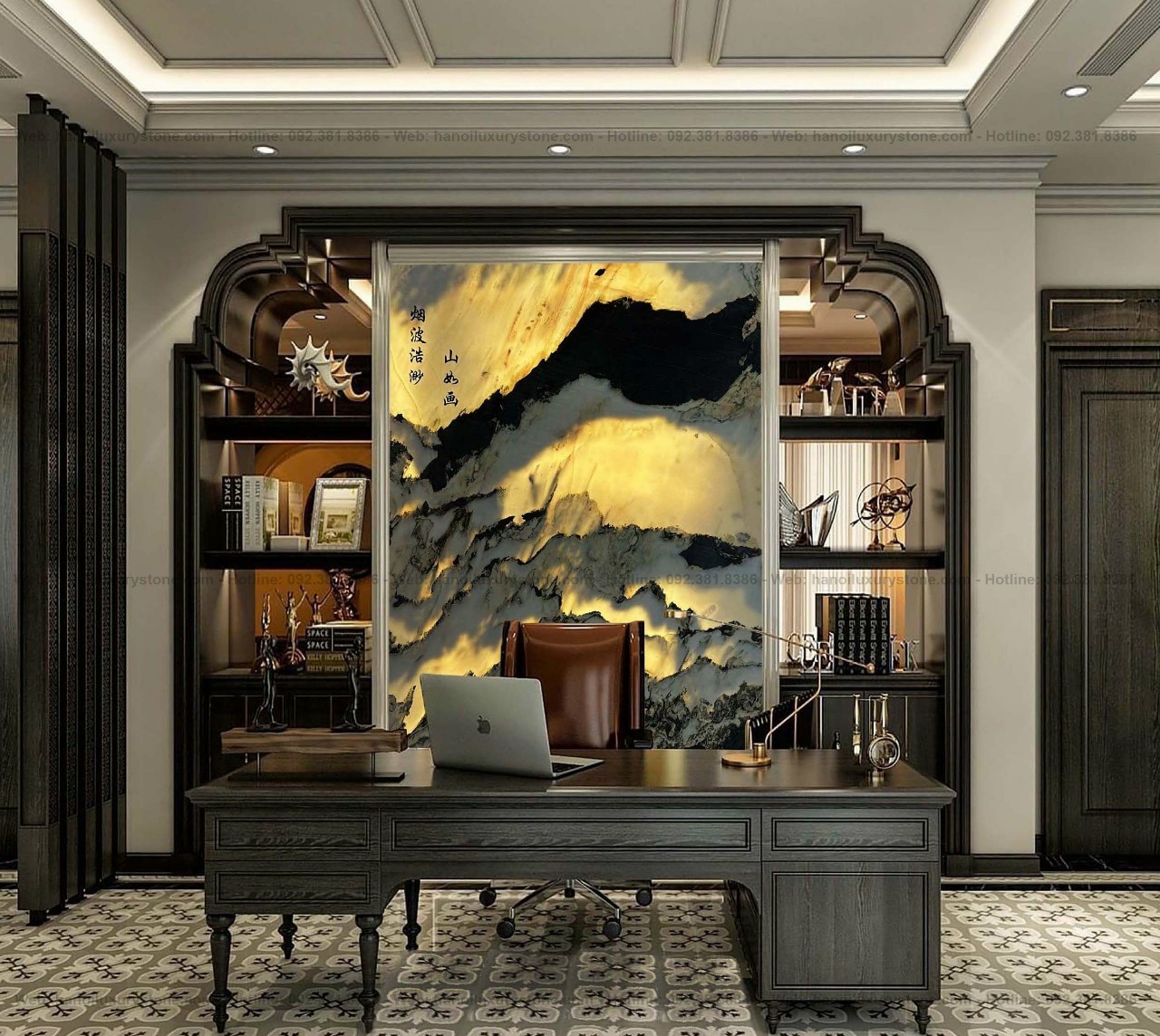 Trong xu hướng thiết kế nội thất hiện đại, tranh đá sơn thủy tự nhiên ngày càng được ưa chuộng trong không gian phòng làm việc nhờ vẻ đẹp sang trọng, bền vững cùng ý nghĩa phong thủy sâu sắc. Việc thi công tranh đá sơn thủy phòng làm việc không chỉ tạo điểm nhấn thẩm mỹ đẳng cấp mà còn góp phần kích hoạt tài lộc, thu hút vượng khí, hỗ trợ con đường công danh và sự nghiệp.