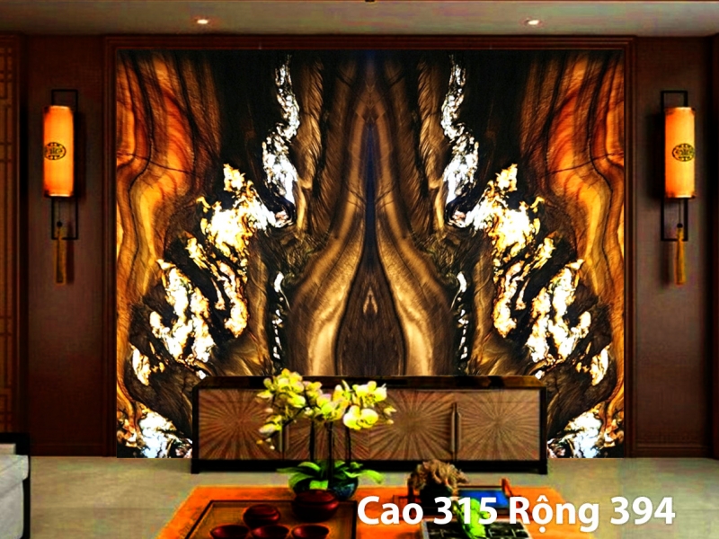 Biến Đổi Không Gian: Hiệu ứng xuyên sáng tạo ra một tiêu điểm mạnh mẽ, thu hút mọi ánh nhìn. Nó giúp làm mềm ánh sáng tổng thể của căn phòng, tạo nên một bầu không khí ấm áp, lãng mạn và cực kỳ sang trọng. Bức tranh đá trở nên sống động và thay đổi sắc thái tùy theo cường độ và màu sắc của ánh sáng chiếu từ phía sau.