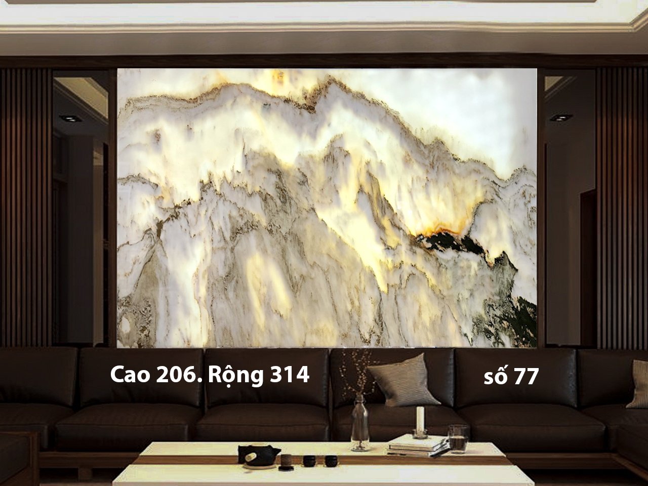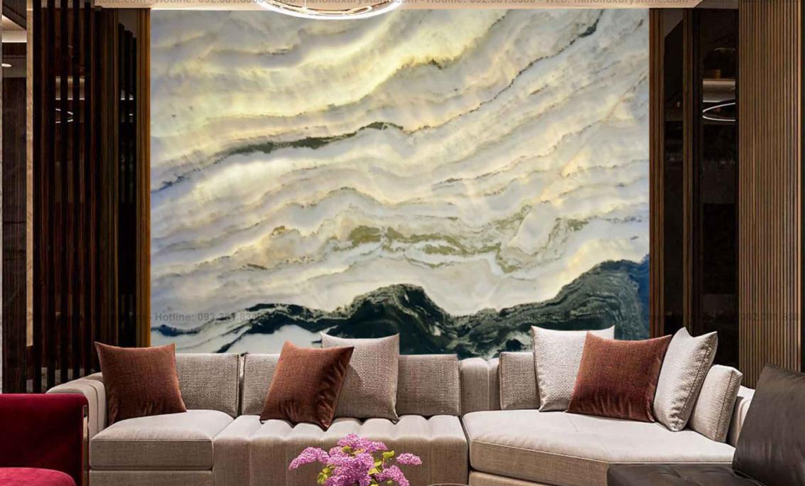 Những đường vân đá tự nhiên mềm mại, khi mạnh mẽ, khi uyển chuyển, tạo nên chiều sâu nghệ thuật mà không cần quá nhiều chi tiết. Chính sự tiết chế này giúp tranh đá dễ dàng hòa vào không gian, tôn lên vẻ đẹp tổng thể thay vì lấn át nội thất xung quanh.